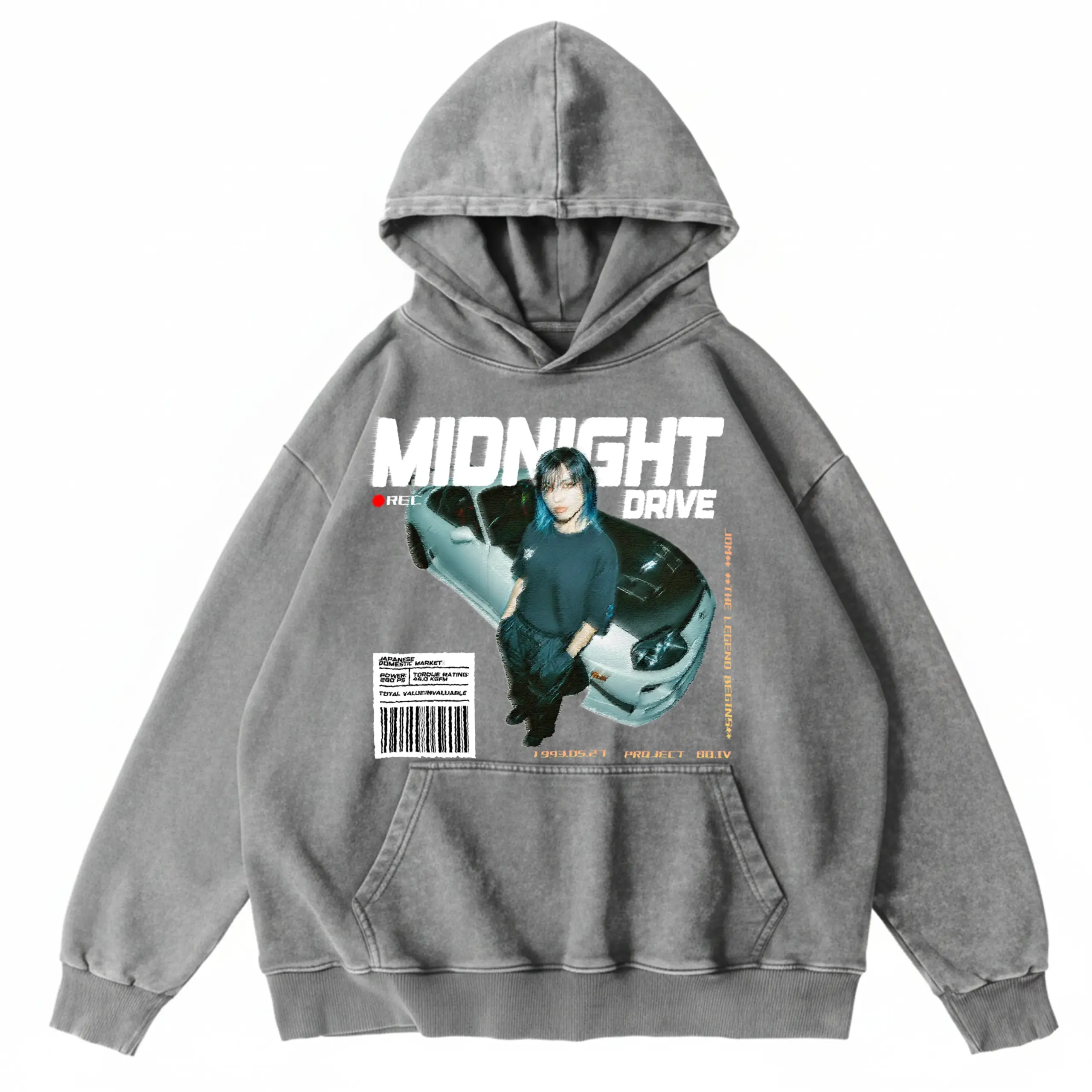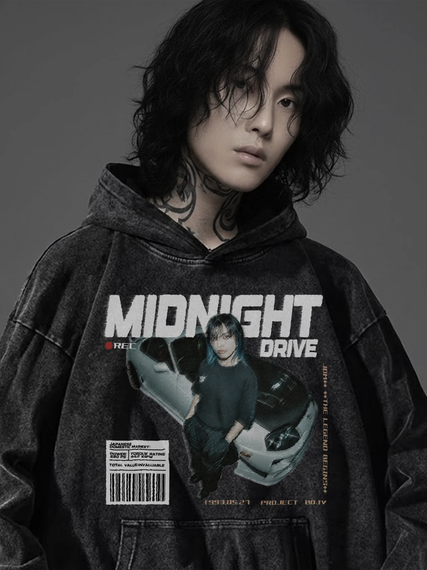 夜の首都高を駆け抜けた者だけが知る、あの一瞬の静寂と緊張感。「MIDNIGHT DRIVE」は、深夜のアスファルトに灯るヘッドライトの軌跡をテーマにした、STUDIO RS初のヴィジュアルフーディです。